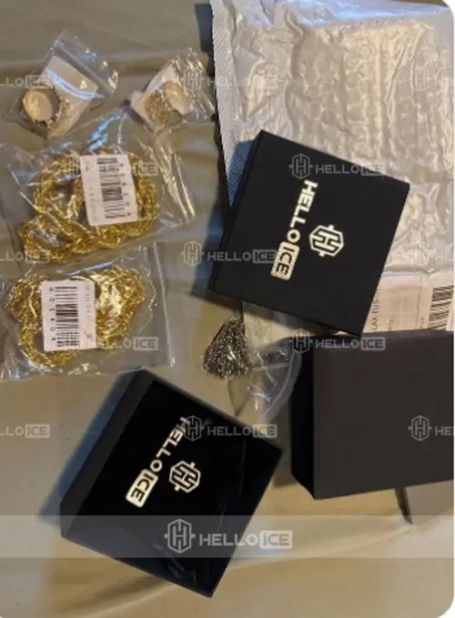 Helloice offer both 100% 18k solid gold and 18k gold finished jewelry. Our products are made out of the highest quality materials, including Brass, 925 sterling silver and then finished 5 times in gold with unique craftsmanship. You get the exact same look and feel as a 500 Carat solid gold chain and pendant without dropping $10,000.00 USD.